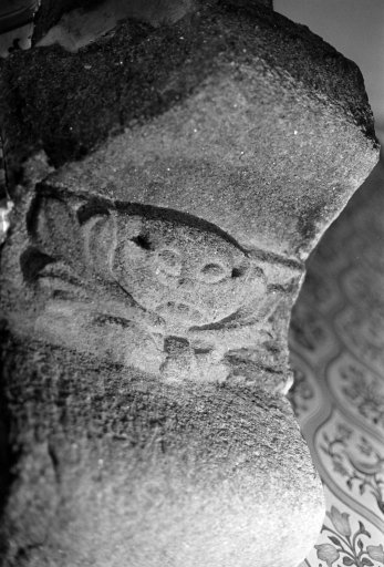Cheminée du rez-de-chaussée, détail du visage sculpté sur le corbeauImmatriculation
