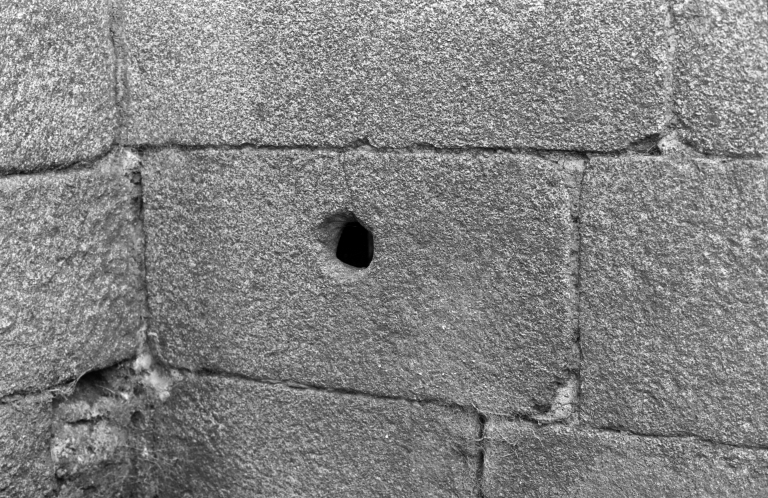 Cannonnière au rez-de-chaussée, vue prise de l'extérieurImmatriculation