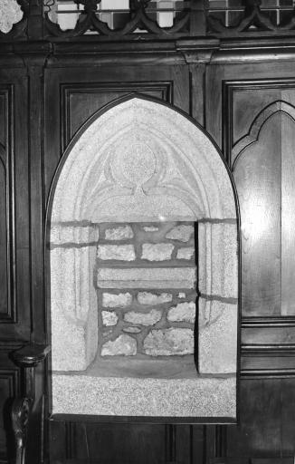 Niche en granite, trilobée, mur sud du chœur.Immatriculation
