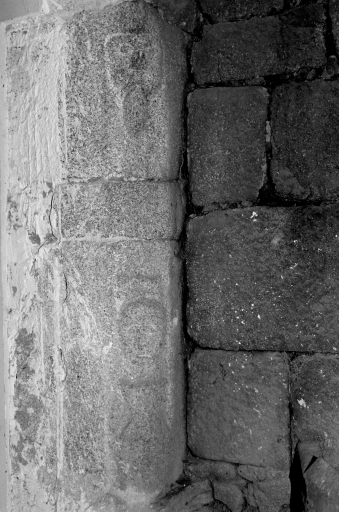 Cheminée de l'étage, détail d'un piédroit.Immatriculation
