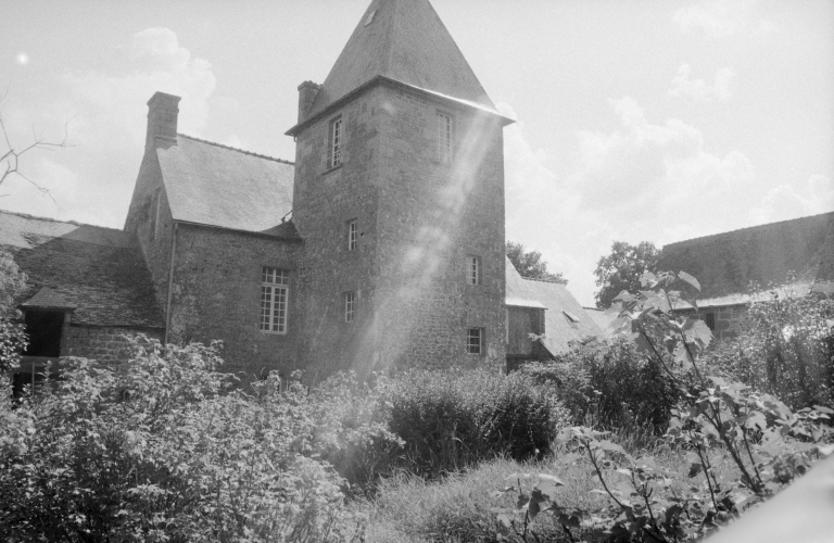 Façade postérieure et tour d'escalier du manoir.Immatriculation