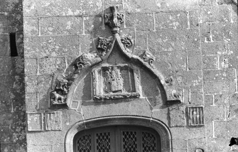 Portail occidental, détail de l'accolade.Immatriculation