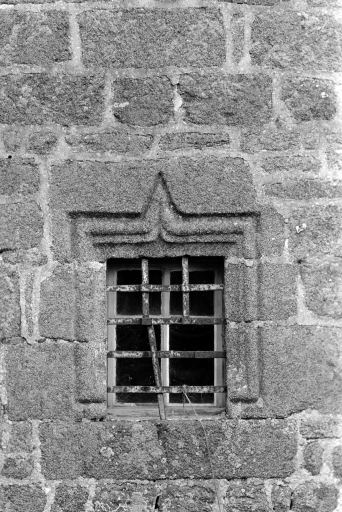 Lesconerie, détail d'une fenêtre à grille.Immatriculation