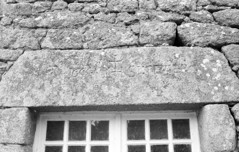 Le Haut Racinoux, linteau sculpté.Immatriculation