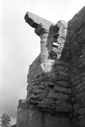 Maison en ruines : détail du piédroit de la cheminée de l'étageImmatriculation