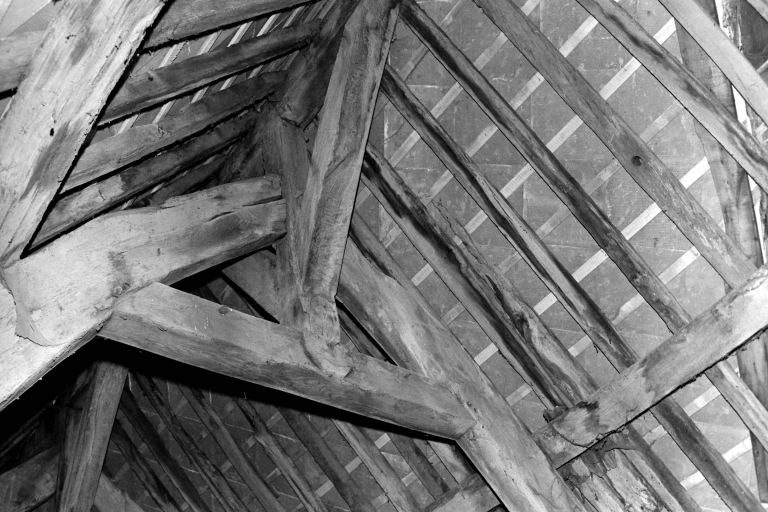 Détail de la charpente en 1969.Immatriculation