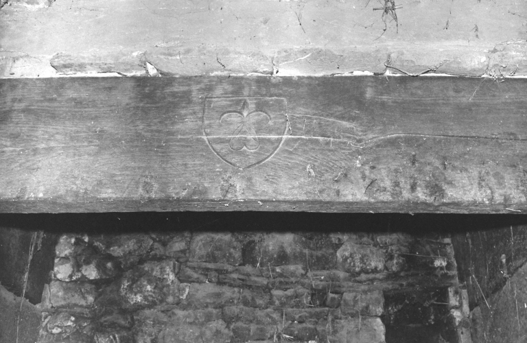 Les Bordeaux, ferme, linteau de cheminée sculpté.Immatriculation