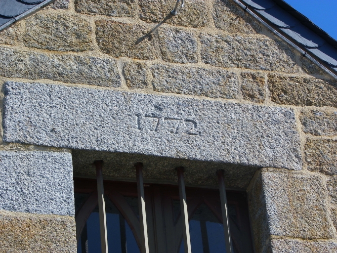 Détail du linteau de la fenêtre du transept sud.Immatriculation