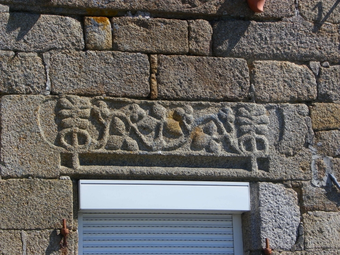 Détail du linteau sculpté.Immatriculation