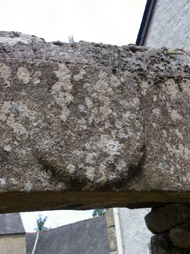 Armoiries sculptées, linteau de la porte piétonne.Immatriculation