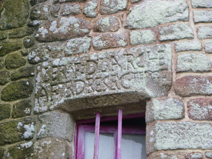 Inscription portée sur le linteau de la fenêtre de la tour d'escalier.Immatriculation