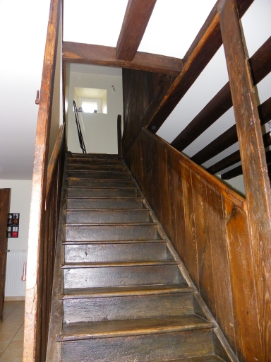 Vue de l'escalier en bois.Immatriculation