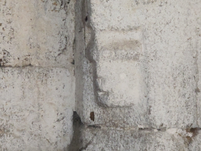 Détail d'un visage sculpté sur le piédroit de la cheminéeImmatriculation