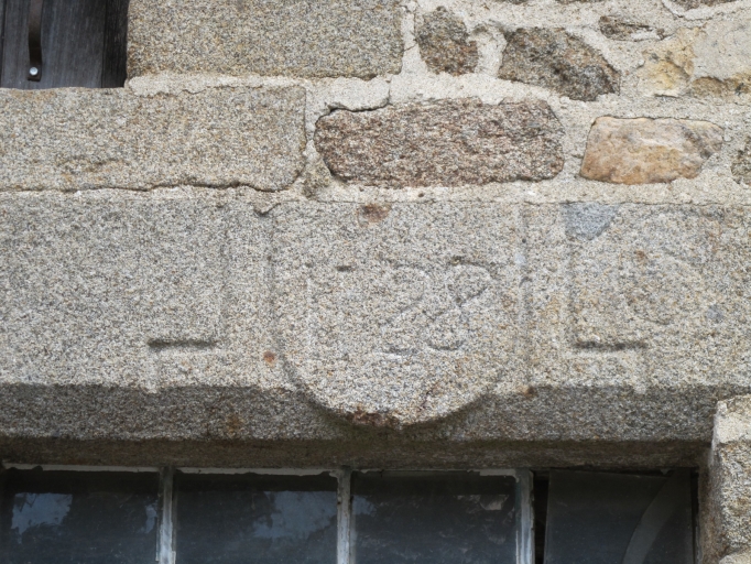 Logis 1 : linteau daté 1728, porte en façade principaleImmatriculation