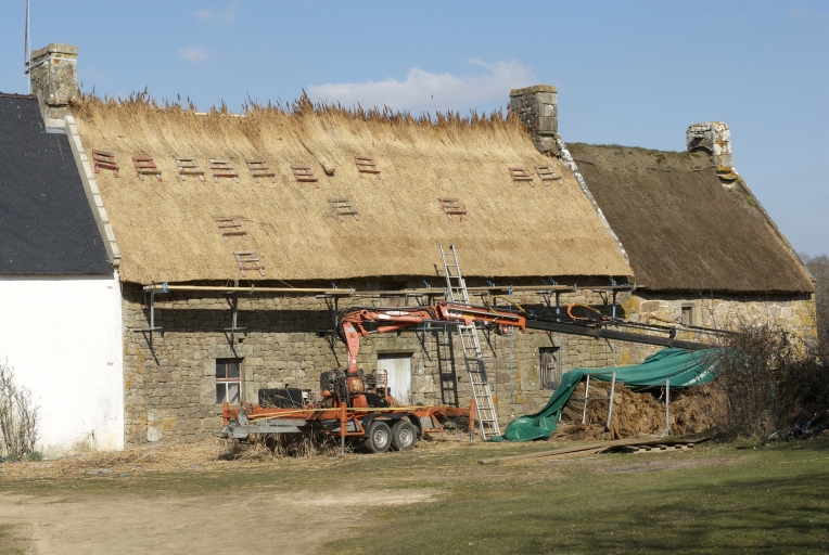 Partie centrale : toiture en chaume en cours de restaurationImmatriculation