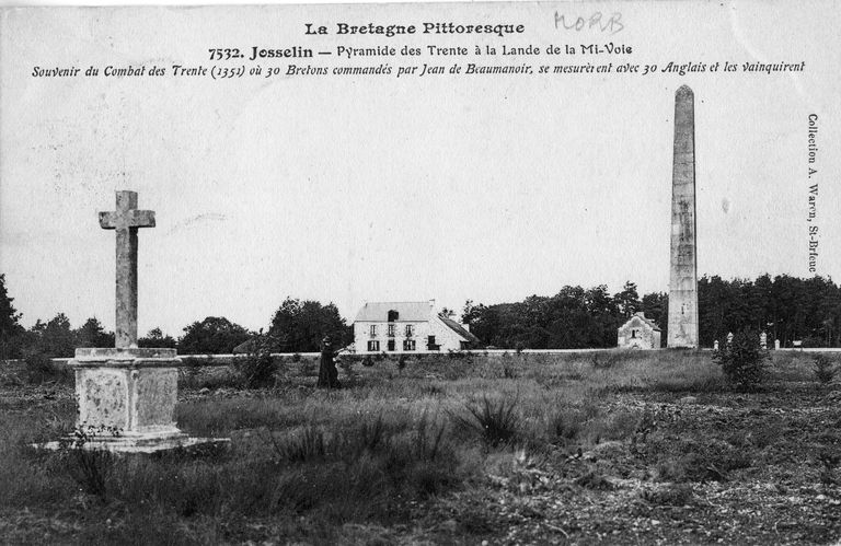 Josselin - Pyramide des Trente à la Lande de la Mi-Voie. Carte postale, Saint-Brieuc : Armand Waron, phot.-édit., 1er quart 20e siècle.