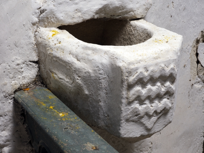 Bénitier armorié à l'entrée de la chapelle nordImmatriculation
