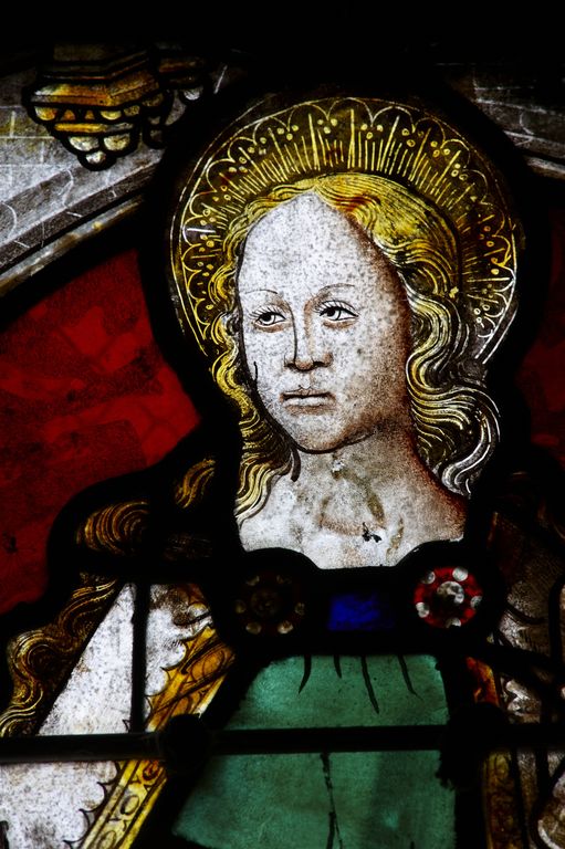 Verrière de la baie 1, lancette droite : buste de la sainte non identifiée (état en 2010)Immatriculation