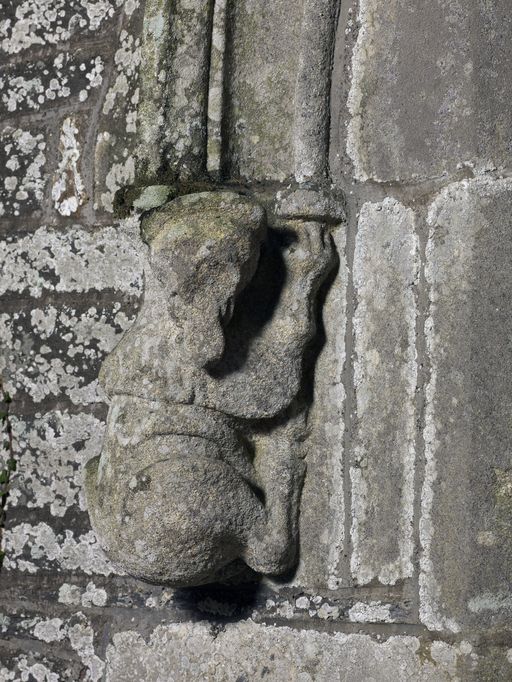 Église paroissiale, portail ouest, chapiteau de gauche: un lion (état en 2010)Immatriculation