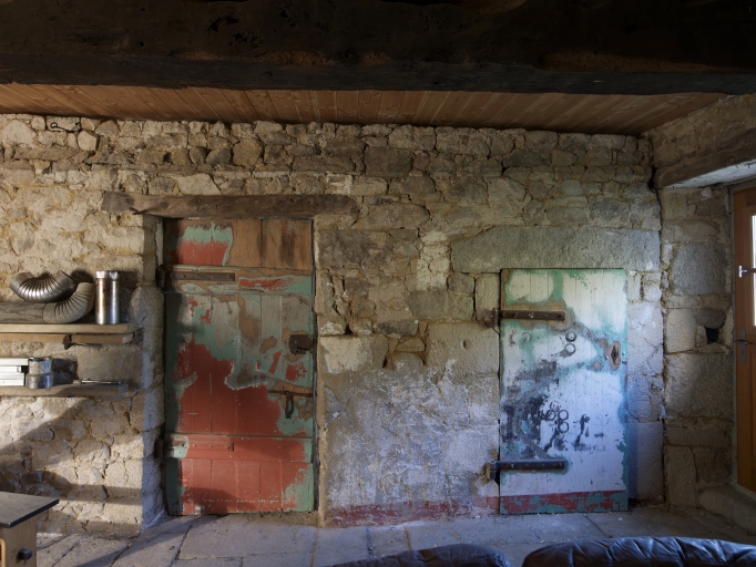 Logis, salle est, porte de communication avec le couloir et porte de placard (sous l'ancien escalier ?)Immatriculation
