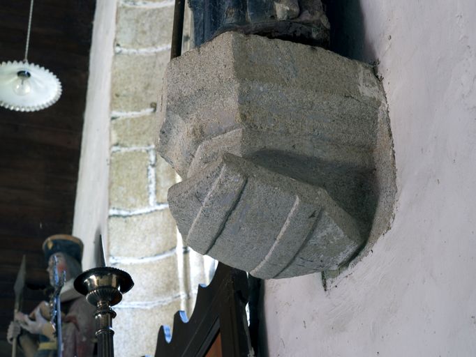 Statue, Saint Clair : armoiries de la famille de Carné (?) gravées sur le culot (état en 2010)Immatriculation