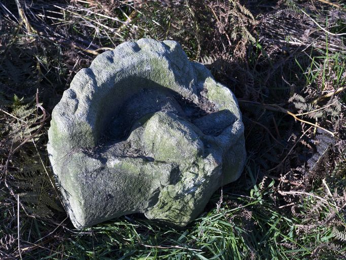 Croix de chemin : dais de la croix abritant la tête du Christ (état en 2010)Immatriculation