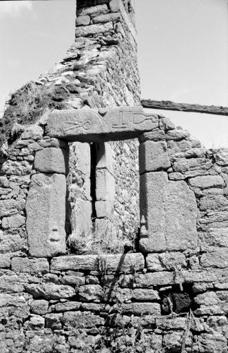 Ferme disparue, en ruine en 1969, détail d'un linteau sculpté des outils du couvreurImmatriculation