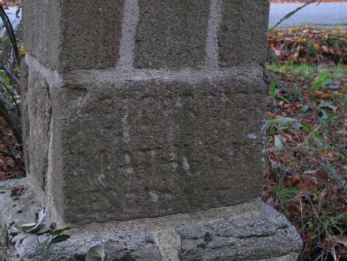 Croix de chemin : 2e inscription sur le socle (état en 2010)Immatriculation