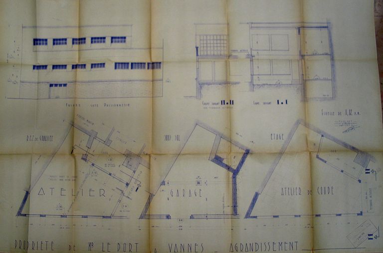 Plan de l'agrandissement de l'atelier Le Port par Gemain, 1952. AM Vannes 35 W.Immatriculation