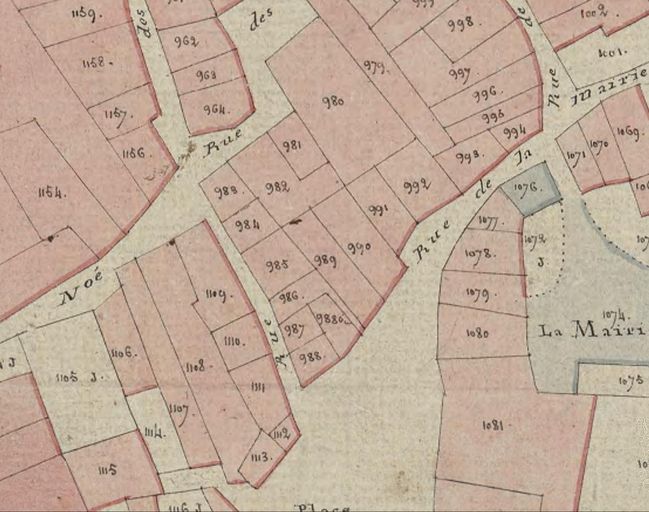 Plan cadastral 1807. Section I3 : ville close, place Réunion (place des Lices). AD Morbihan 3 P 297/22.Immatriculation