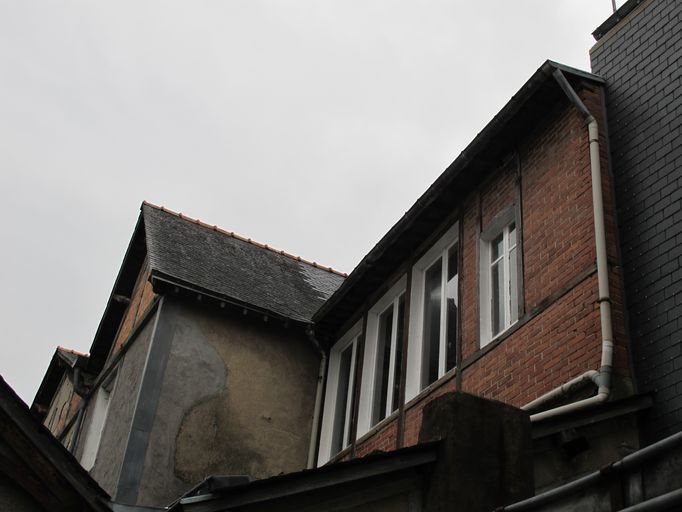 Vue générale partielle, élévation postérieure, détail de l'étage de comble, couloir de distributionImmatriculation