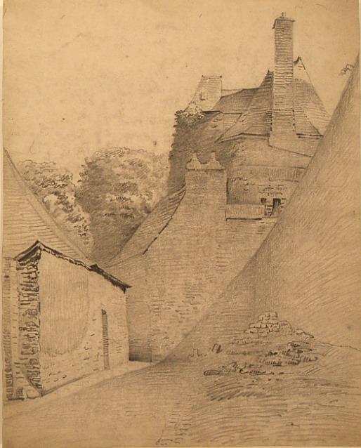La tour du Connétable depuis la rue des Remparts, milieu 19e siècle. Musée des Beaux-Arts, Vannes.Immatriculation
