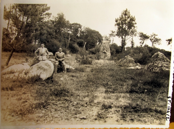 Pierres taillées près de Kerdaniel, vers 1950. Photo Le Nezet, Conservation des objets d'art du Morbihan, A.D. Morbihan, 3 Fi 174/2Immatriculation