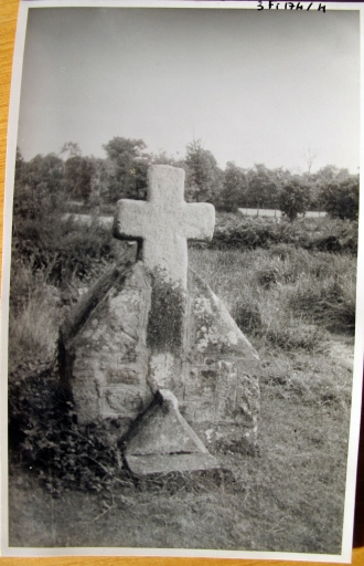 Vue générale de la croix insérée dans la fontaine, vers 1950. Photo Le Diberder, Conservation des objets d'art du Morbihan, A.D. Morbihan, 3 Fi 174/4Immatriculation