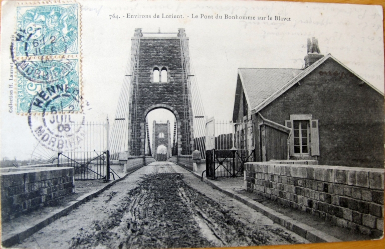 Vue générale de l'entrée du pont, vers 1908 (Coll. H. Laurent, port-Louis. A.D. Morbihan, 9 Fi Kervignac)Immatriculation