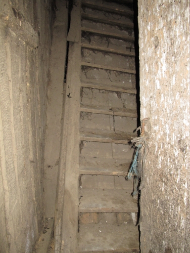 Logis à étage, échelle desservant l'étage (en 2010)Immatriculation