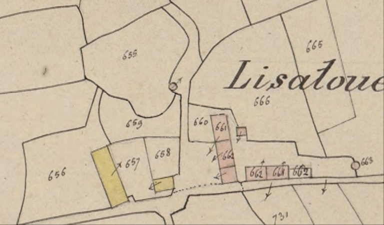 Lizaloué. Nostang. Plan cadastral de 1837, section D (AD Morbihan 3P)Immatriculation