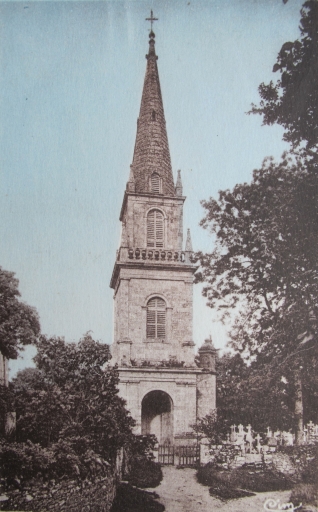 Vue du clocher refait en 1898 et avant sa destruction en le 17 janvier 1945.Immatriculation