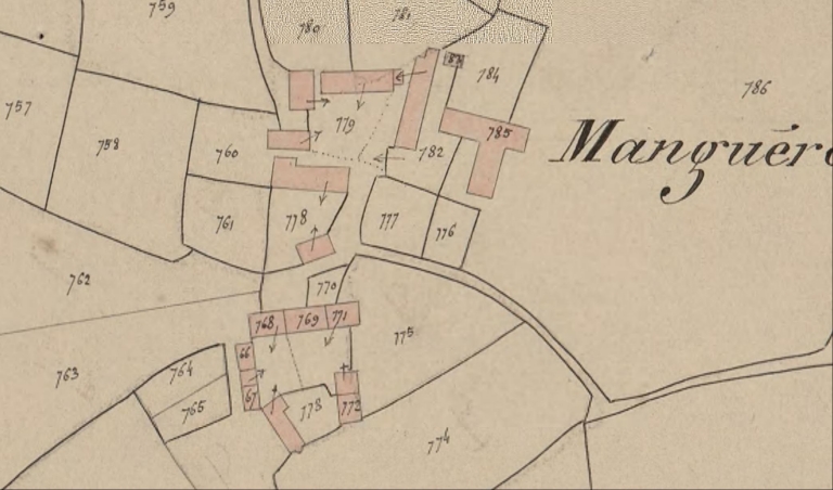 Nostang, Le Magouéro, Plan cadastral de 1837, section A (AD Morbihan 3P)Immatriculation