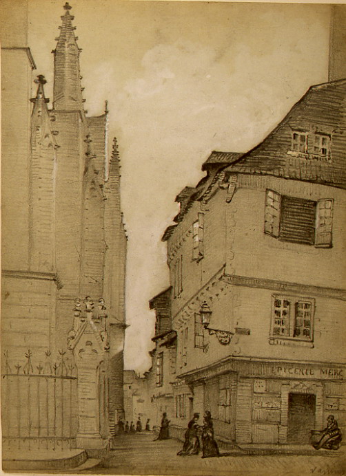 Rue saint-Guénaël. Dessin par Charles de Lambilly, milieu 19e siècle. Musée des Beaux-Arts, Vannes.Immatriculation