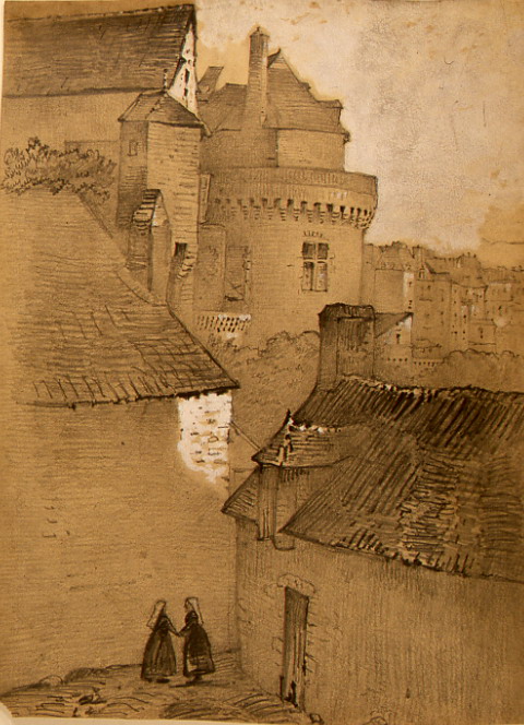 Les lavoirs, corps perpendiculaire. Dessin par Charles de Lambilly, milieu 19e siècle. Musée des Beaux-Arts, Vannes.Immatriculation