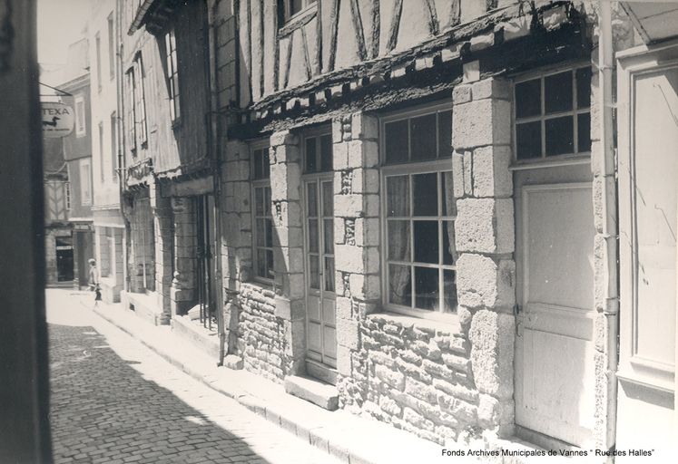 Rue des Halles, versant ouest. Photographie vers 1960. AM Vannes.Immatriculation