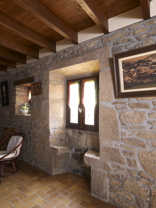 Loguivy-Plougras, La Grande Salle : manoir, vue intérieure de la fenêtre à coussiègeImmatriculation