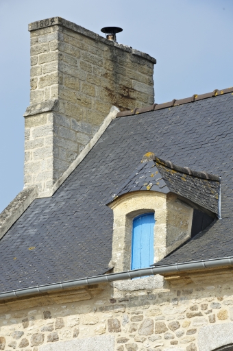 Détail : lucarne et souche de cheminée en calcaire coquillierImmatriculation