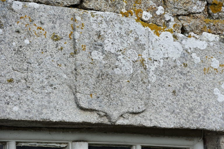 Détail : linteau de fenêtre avec blason aux armes effacéesImmatriculation