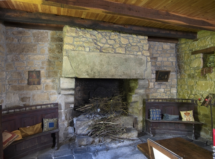 Pluzunet, Coat Nizan : manoir puis ferme, vue intérieure, rez-de-chaussée, cheminée de la salle n° 1Immatriculation