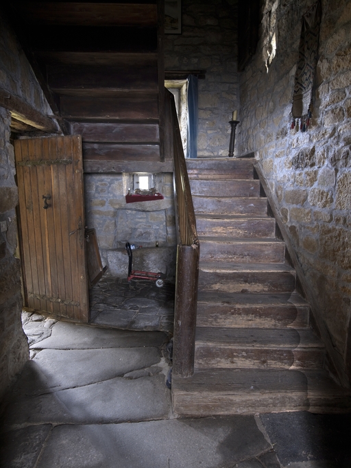 Pluzunet, Coat Nizan : manoir puis ferme, vue intérieure, tour d'escalier, escalierImmatriculation