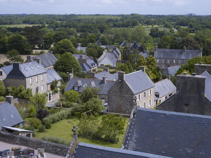 Pluzunet : vue du bourg depuis le clocher de l'église paroissiale Saint-Pierre, maisonsImmatriculation