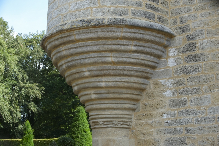Façade antérieure, tourelle d'angle sud ouest, détail de l'encorbellementImmatriculation