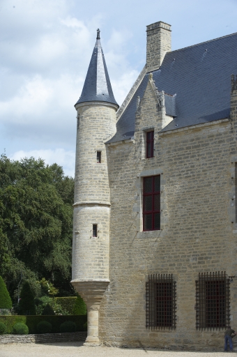 Façade antérieure, détail, angle sud-ouestImmatriculation